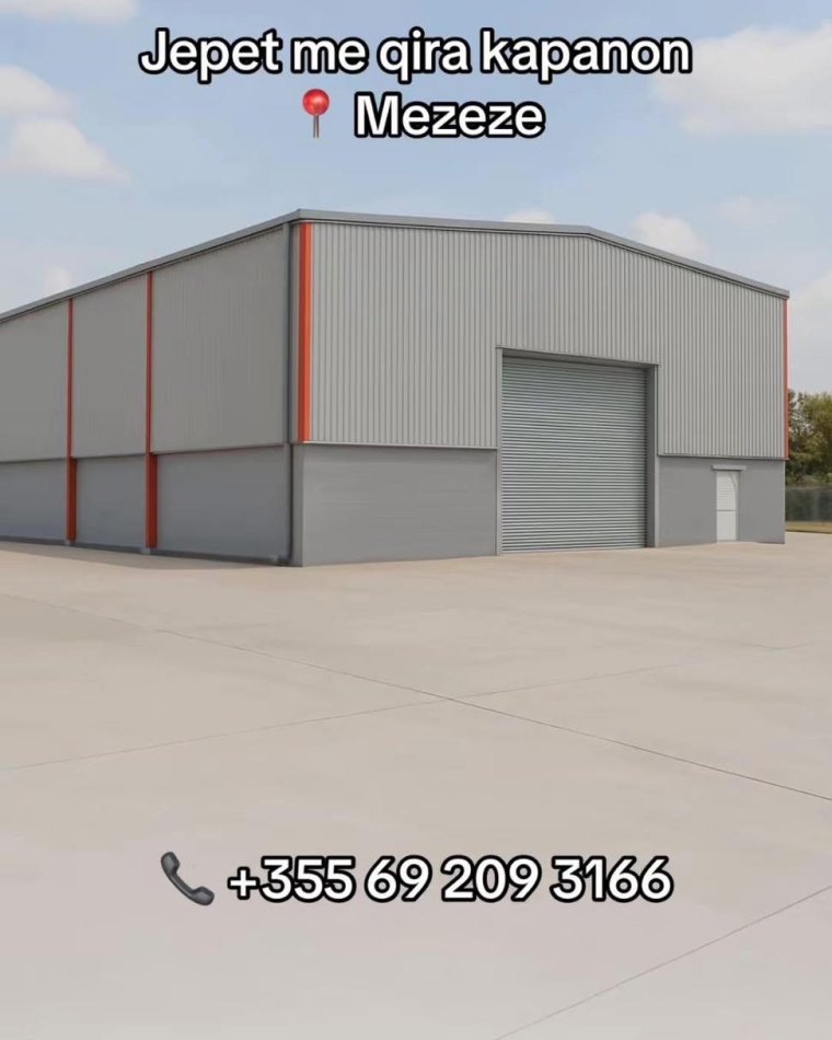 Jepet me qira kapanon Mezez, prane Top Channel Siperfaqja: 1008 m² Siperfaqja e parkimit: 900 m² Lartesia: 7.3 m Ambient zyre 2 tualete Cmimi i diskutueshem +355 69 209 3166