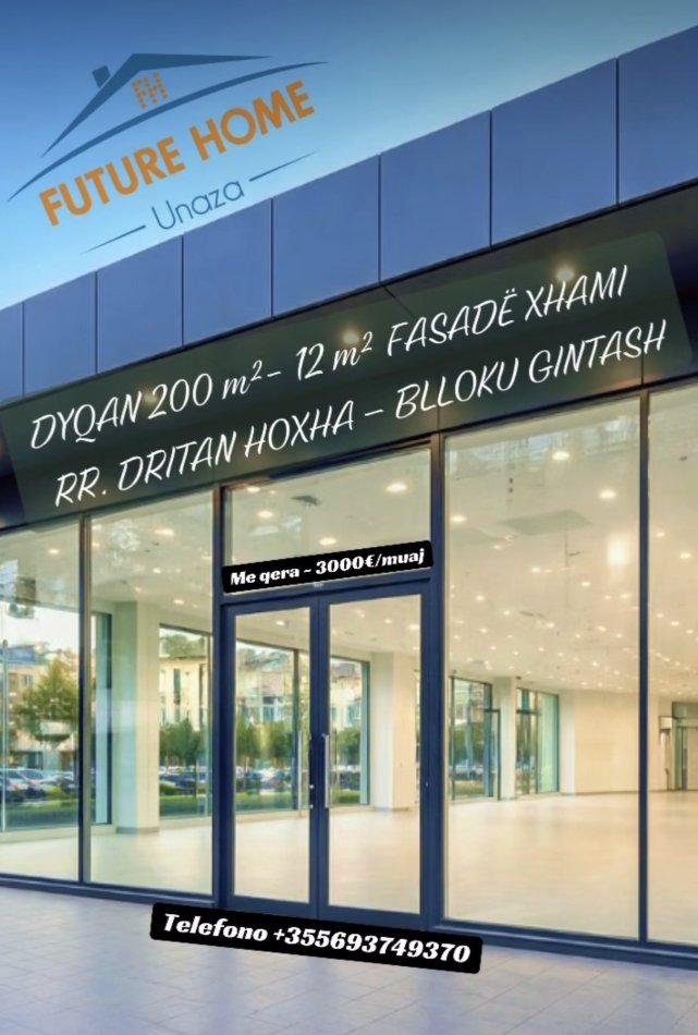 DYQAN 200 m² | 12 m FASADË XHAMI | RRUGA DRITAN HOXHA – BLLOKU GINTASH