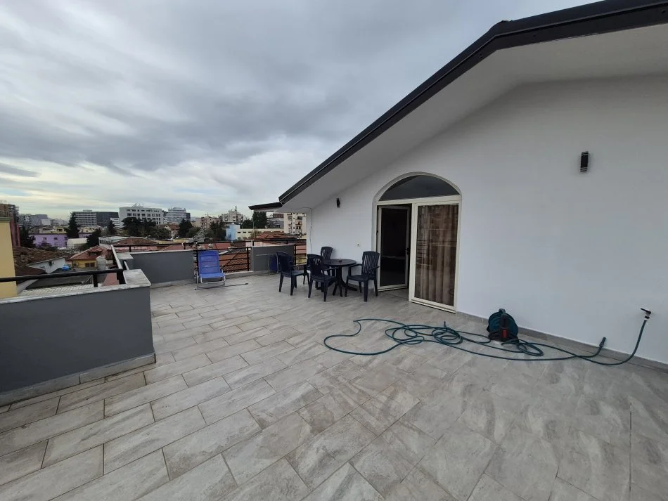 Japim me qera nje super ap 1+1 penthouse ne katin e 4 te nje godine tip vile me nje sip 120m2. Apartmenti ka sallon te madh me verande , dhome gjumi me nje ballkon si dhe nje tualet me dritare. Eshte super okazion per lokacionin dhe per cfare ofron ky apartment.