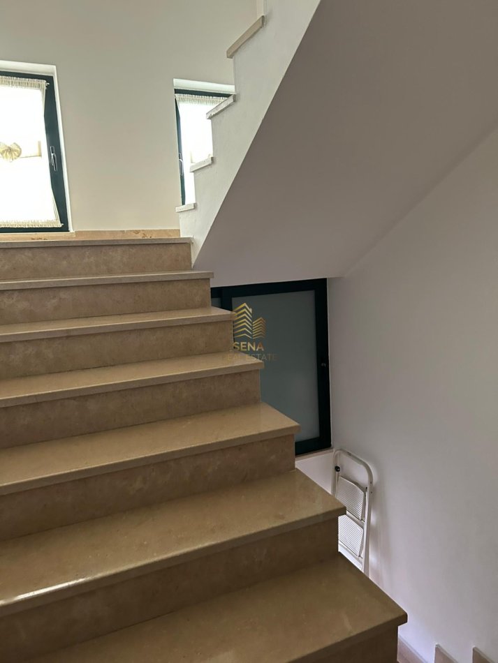 Vila ka shkallë të brendshme por ka dhe mundësi për shkallë nga jashtë. Çdo kat ka një sipërfaqe prej 120 m².