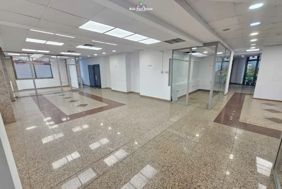Ne Bllok, prane Sheshit Willson, jepet me qera zyre, me siperfaqe 235 m2, kati 1 pallat i ri, ashensor, open space, 2 tualete, sistem aspirimi dhe kondicionimi,