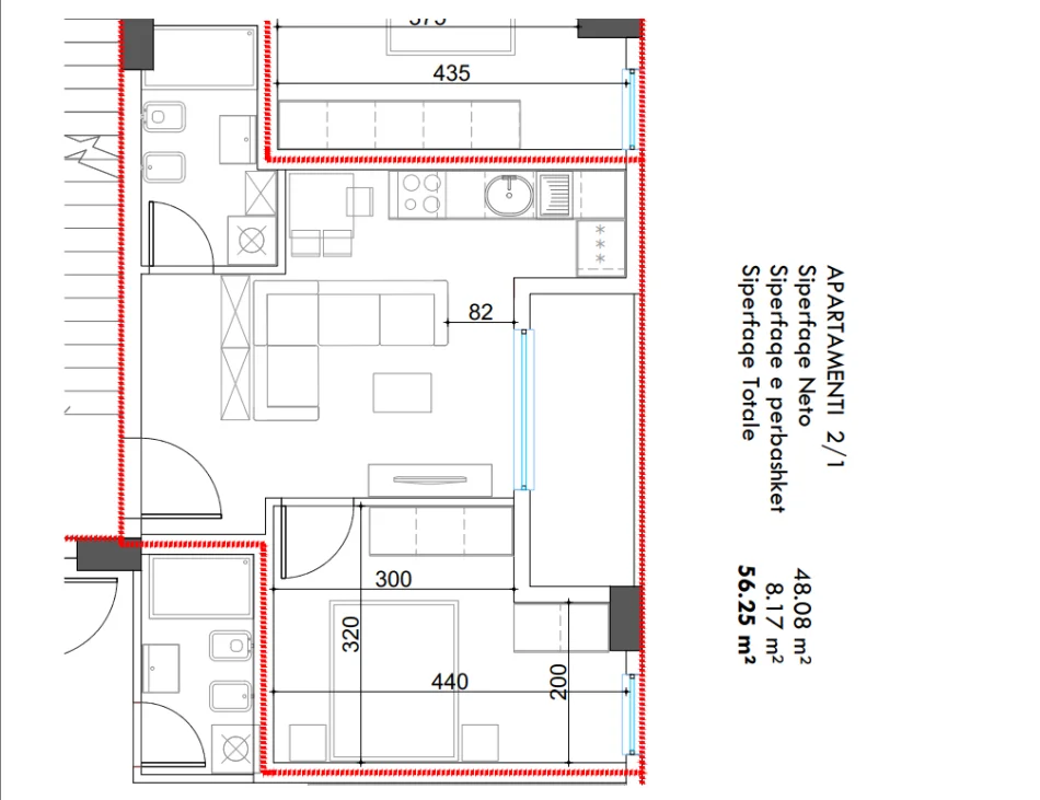 • Sipërfaqe bruto: 56,25 m²