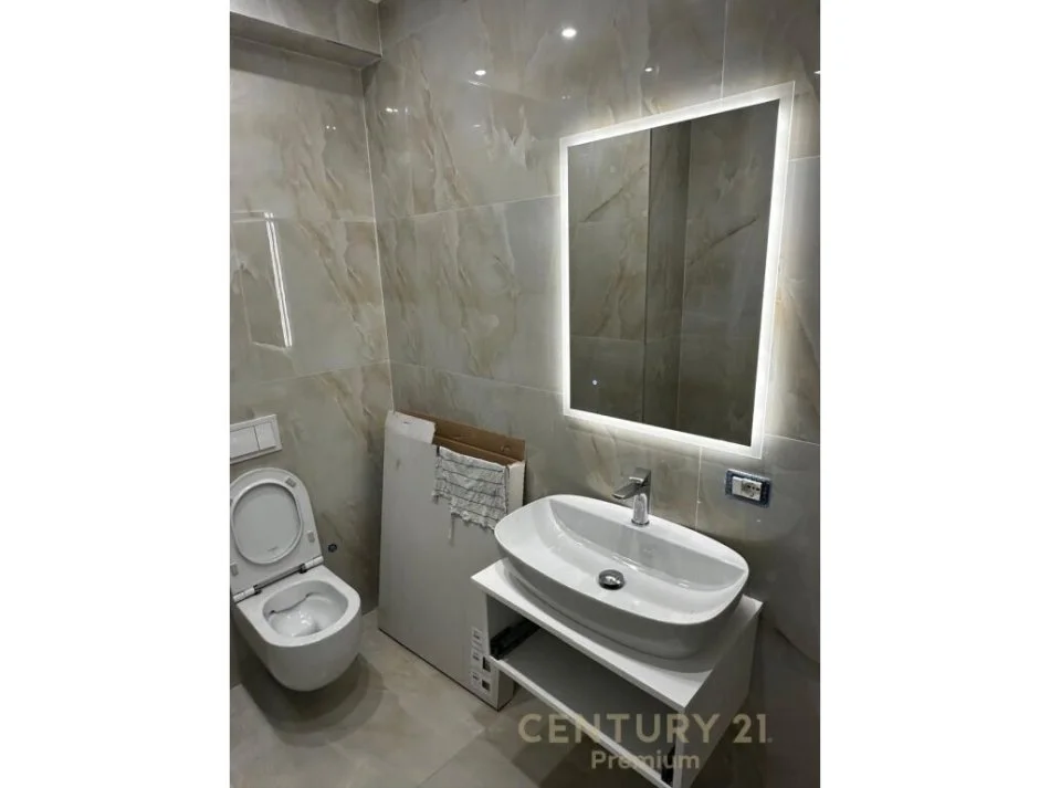 Organizohet nga nje sallon te madh, 2 dhoma gjumi, dy tualete, 2 ballkone .