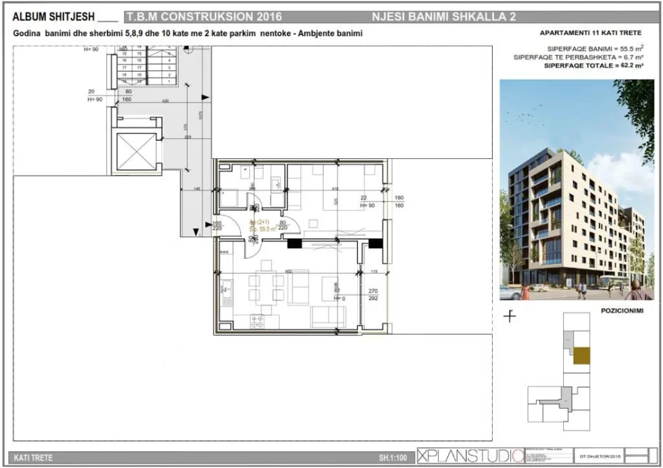 Tirane, jepet me qera zyre Kati 3, 62 m² 700 € (Square 21 / Rruga Sali Butka)
