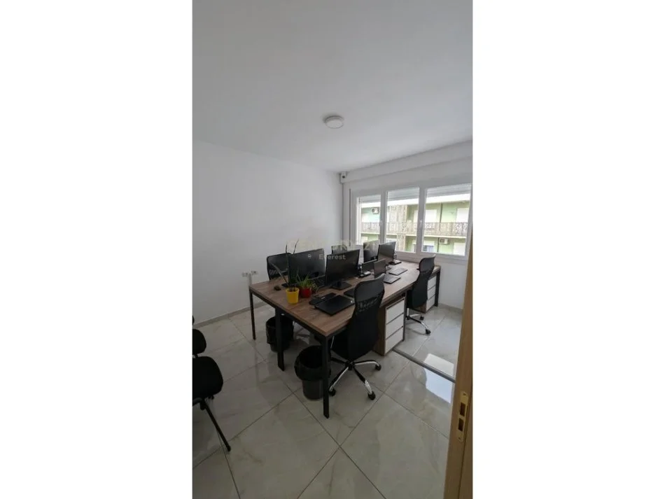 Zyra ndodhe ne katin e 5 te nje pallati te mireadministruar dhe organizohet ne 2 ambiente, nje ballkon dhe nje tualet. Zona eshte nje nga zonat me te mira te Tiranes per zyra dhe aktivitete te ndryshme pasi ka prane institucione, levizshmeri e larte dhe akses i lehte qofte me makine, qofte me linjat kryesore te autobusave.