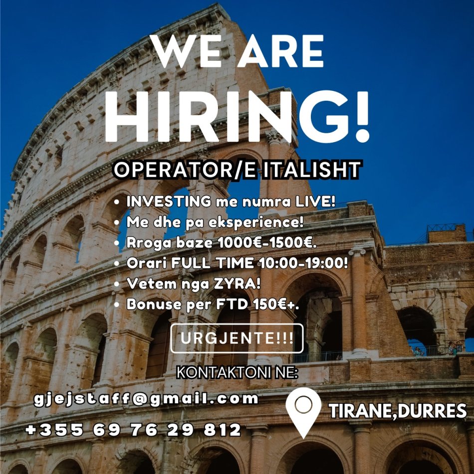 Tirane, kerkohet staf Operator/e Retention