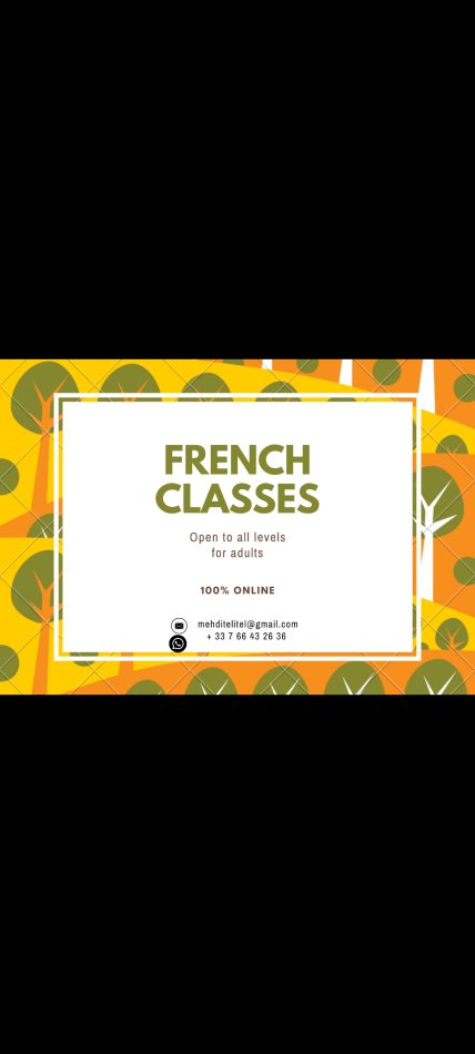 - THE GENERAL CLASS: It's the most popular type of class asked by students. In this class I will do exercises related to tenses, conjugaison, grammar, reading, listening exercises, image descriptions. I have a huge amount of materials:)