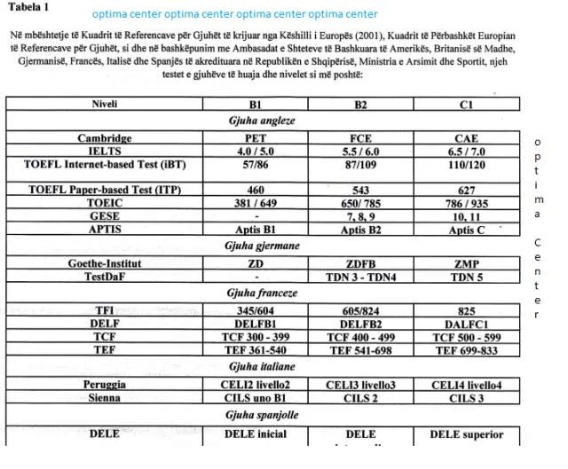 Lista e testeve të gjuhës angleze, të njohura ndërkombëtarisht, në zbatim të udhezimit te Ministrise se Arsimit