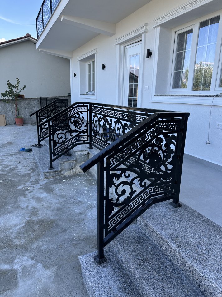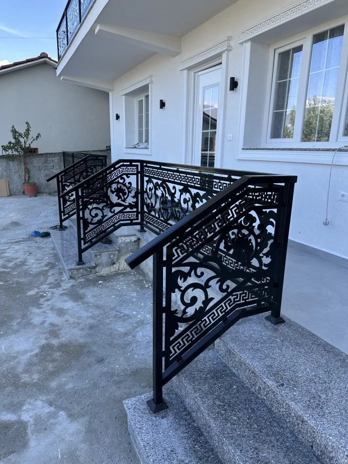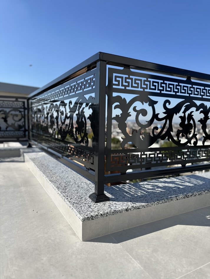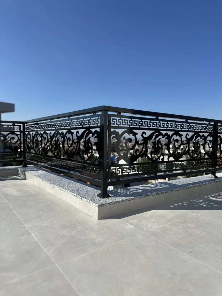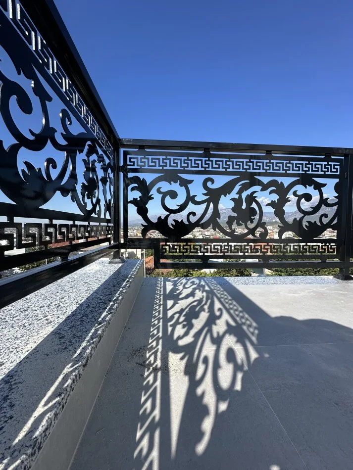 Kangjellë hekuri me dizajn klasik të prerë me lazer, e përsosur për ballkone apo ambiente që kërkojnë elegancë dhe forcë në çdo detaj.