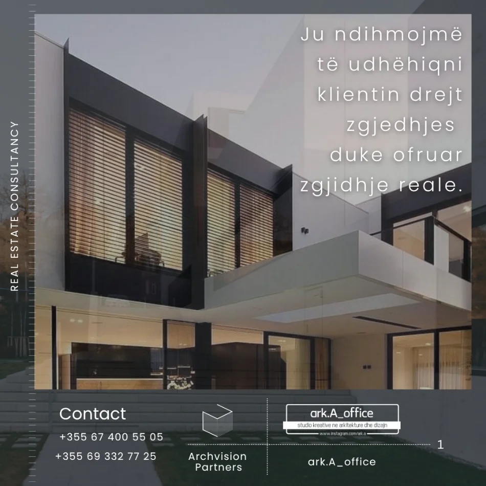 - Ofrojmë projektim dhe konsulencë për prona ne shitje/ blerje.