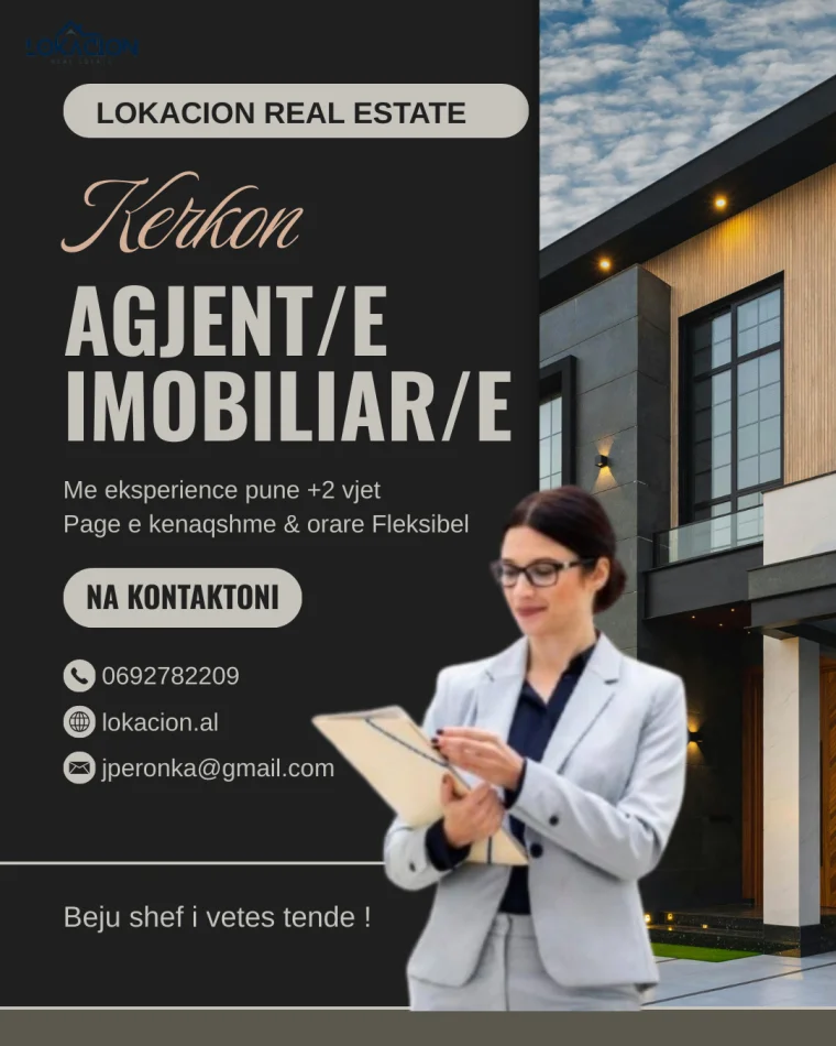 Lokacion Real Estate e pozicionuar pranë Qendes së Tiranës, po kërkon bashkëpunëtorë ambiciozë që duan të ndërtojnë një karrierë fitimprurëse në industrinë e pasurive të paluajtshme.