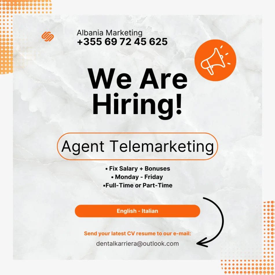Tirane, ofrohen vende pune me orar te plote | turni II | part time Agjent Telemarketing