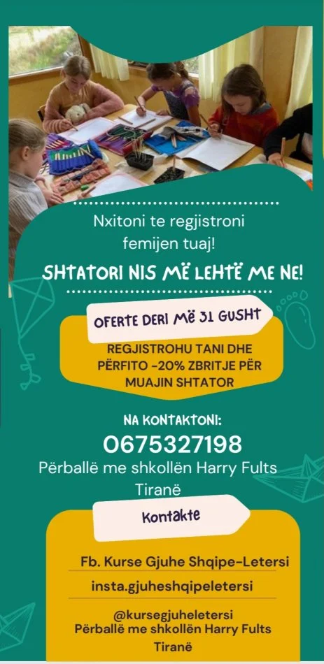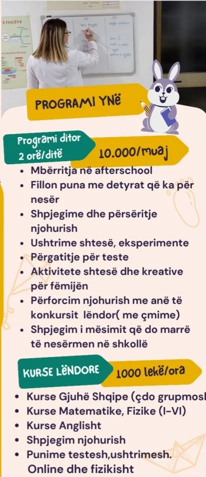 Ofrohet Afterskull për fëmijët pranë shkollës Harry Fults, Tiranë.