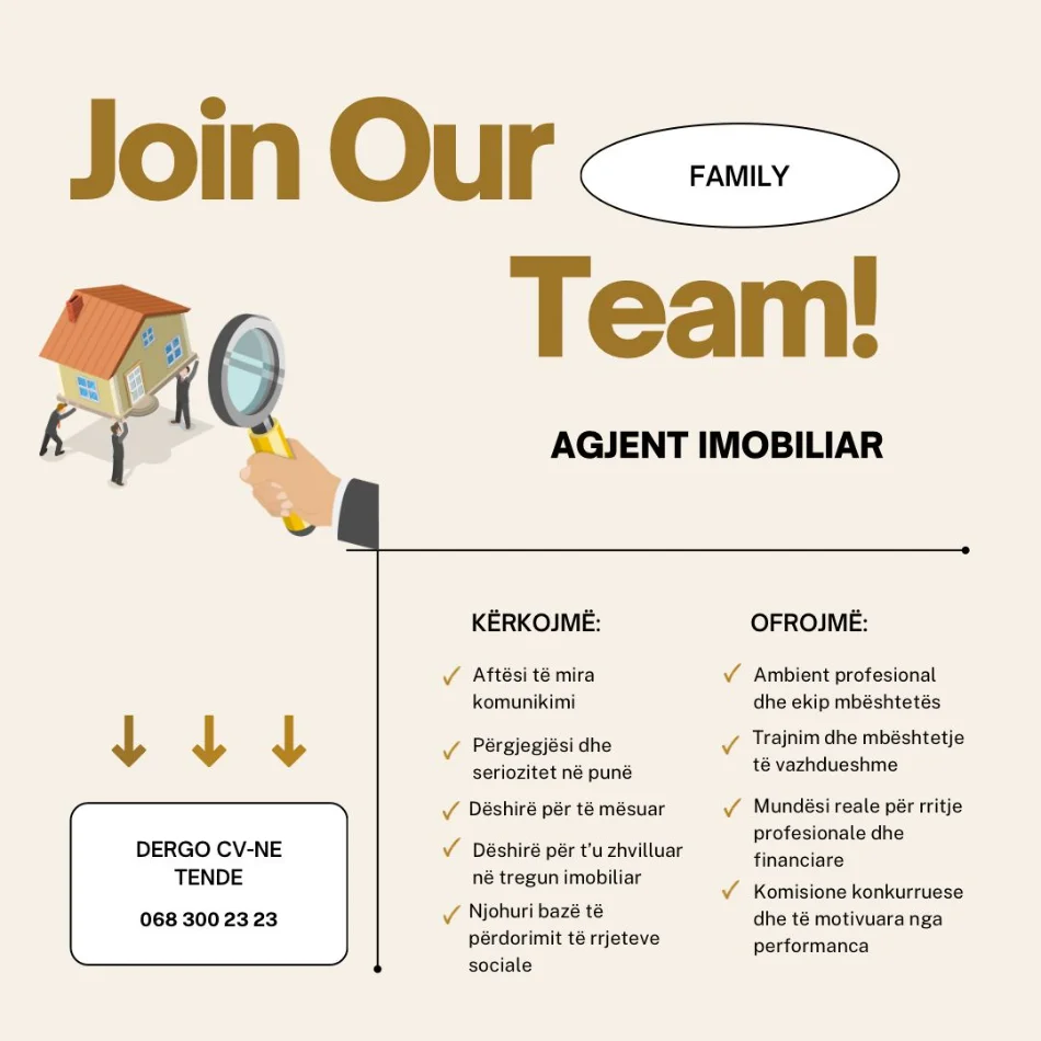 • Tirane, ofrohet vend pune AGJENT IMOBILIAR