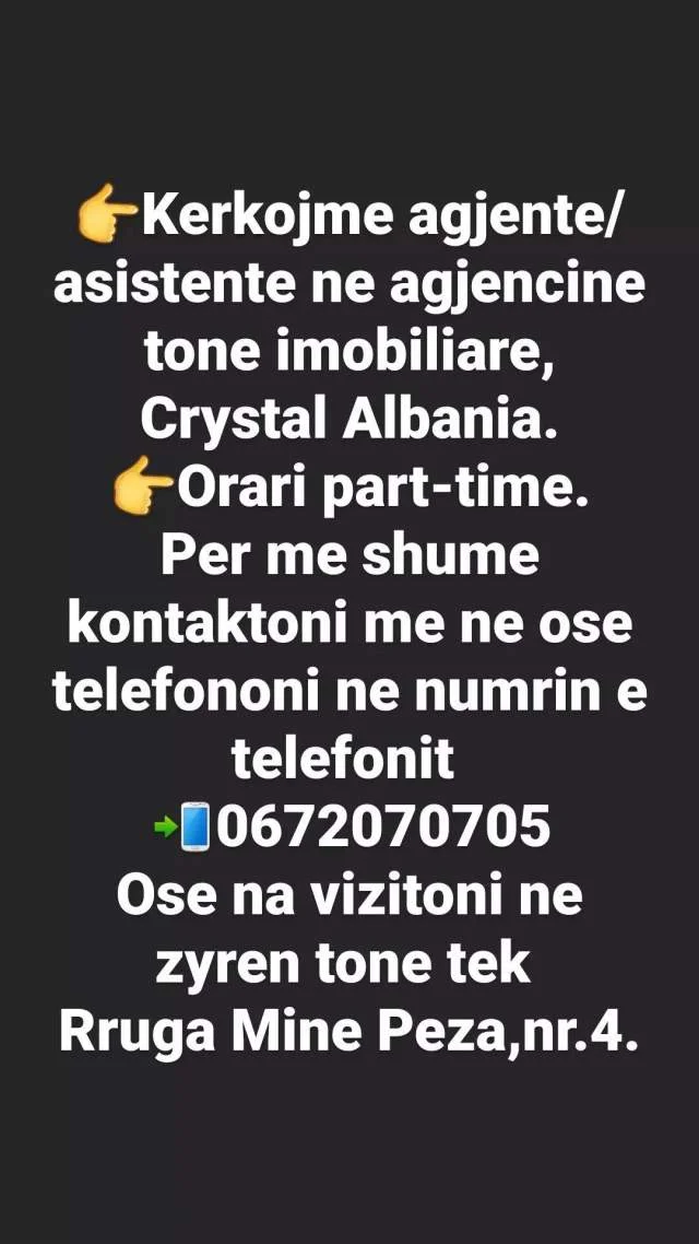 KERKOJME ASISTENT/E DHE AGJENT/E AGJENCI IMOBILIARE,PART TIME/FULL TIME!!