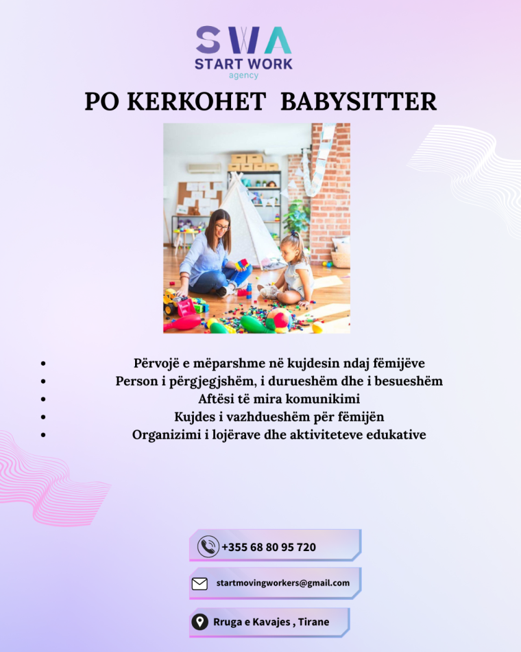 • Tirane, ofrohet vend pune Baby Sitter