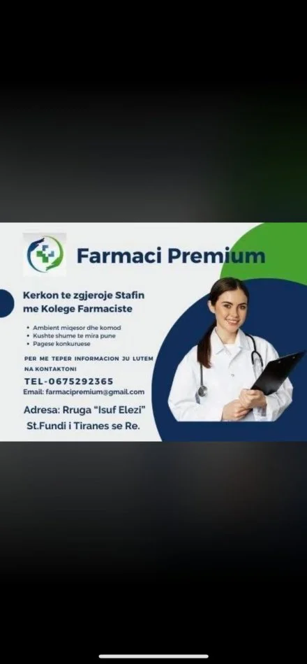 Tirane, ofrohet vend pune Farmaciste