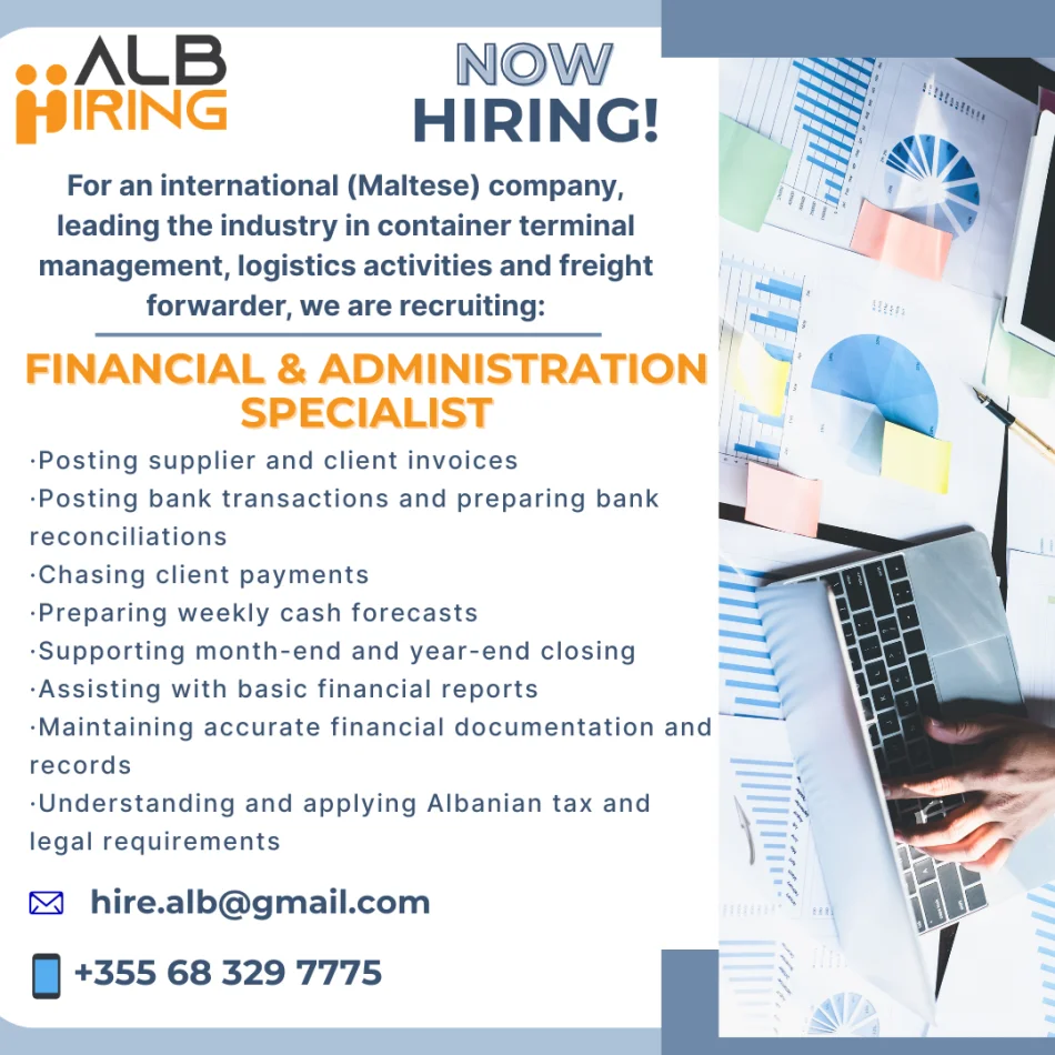 Tirane, ofrohet vend pune Financial and Administration Specialist