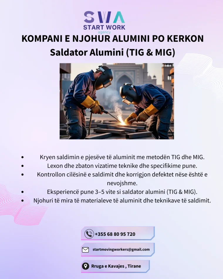 - Eksperiencë pune 3–5 vite si saldator alumini (TIG & MIG).