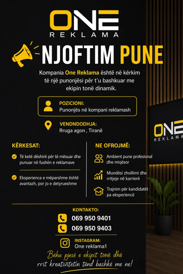 Kompania One Reklama është në kërkim të një punonjësi për t'u bashkuar me ekipin tonë dinamik.