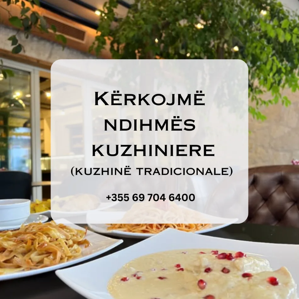 • Tirane, ofrohet vend pune Ndihmës kuzhiniere (Kuzhine Tradicionale)