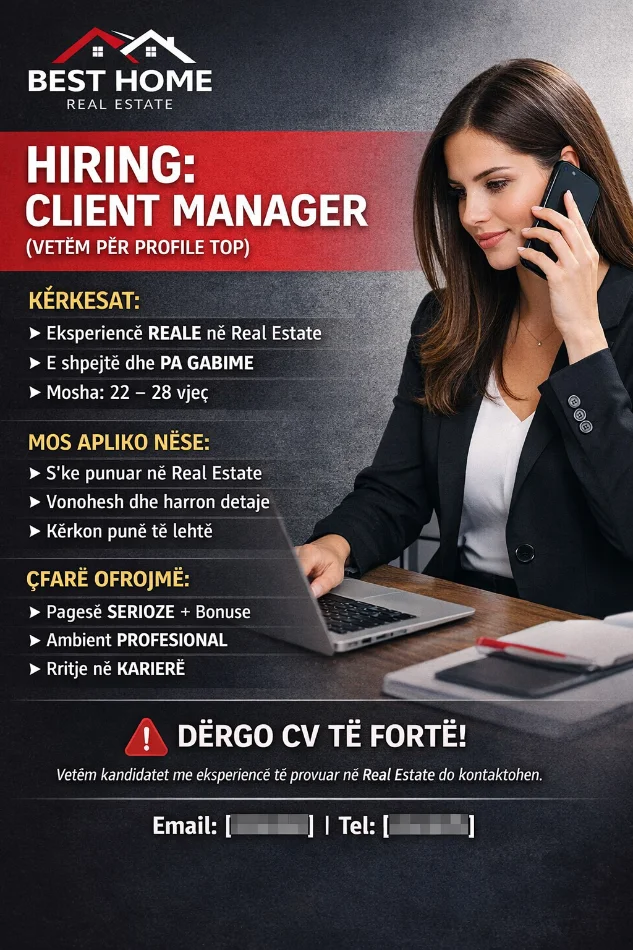Best home Estate kërkon Client Manager (vetëm për profile TOP)