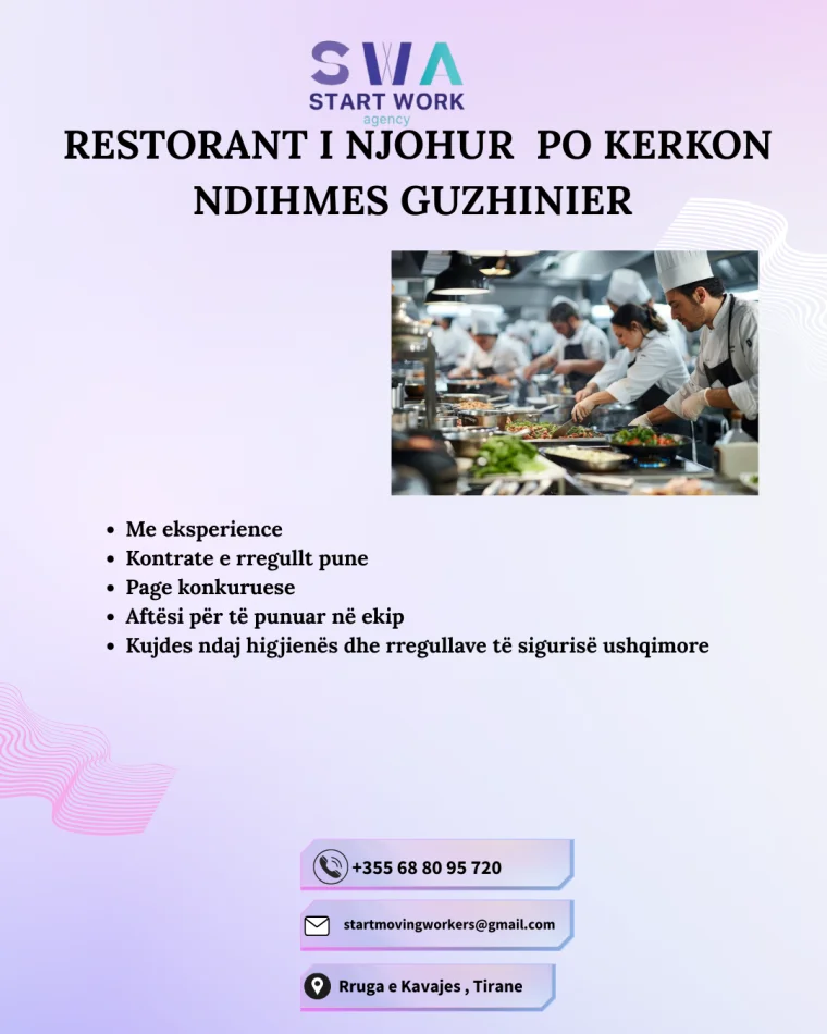Tirane, ofrohet vend pune RESTORANT I NJOHUR PO KERKON NDIHMES GUZHINIER