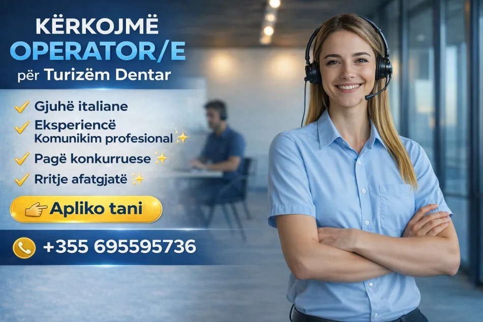 Tirane, ofrohet vend pune Tirane, ofrohet vend pune Operator Turizem Dentar, Kontakto Nr Live
