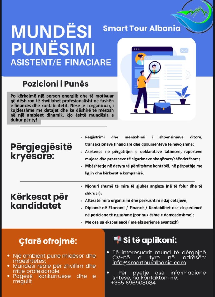 Tirane, ofroj vend pune Asistent/e financiar