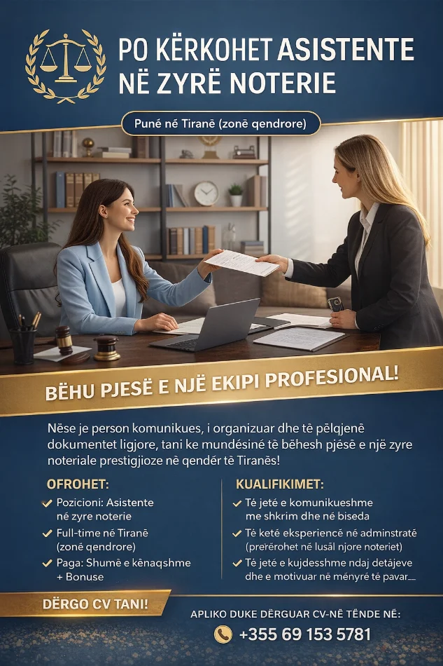 Tirane, ofroj vend pune Asistente per zyre noterie