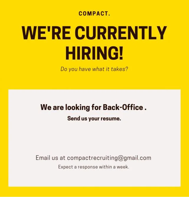 Send us your CV at : compactrecruiting@gmail.com .