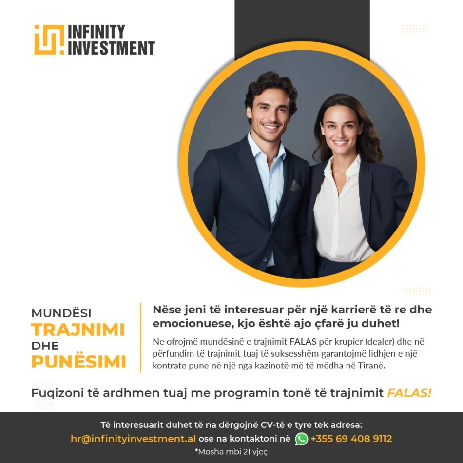 📩 Dërgoni CV-në tuaj në: hr@infinityinvestment.al