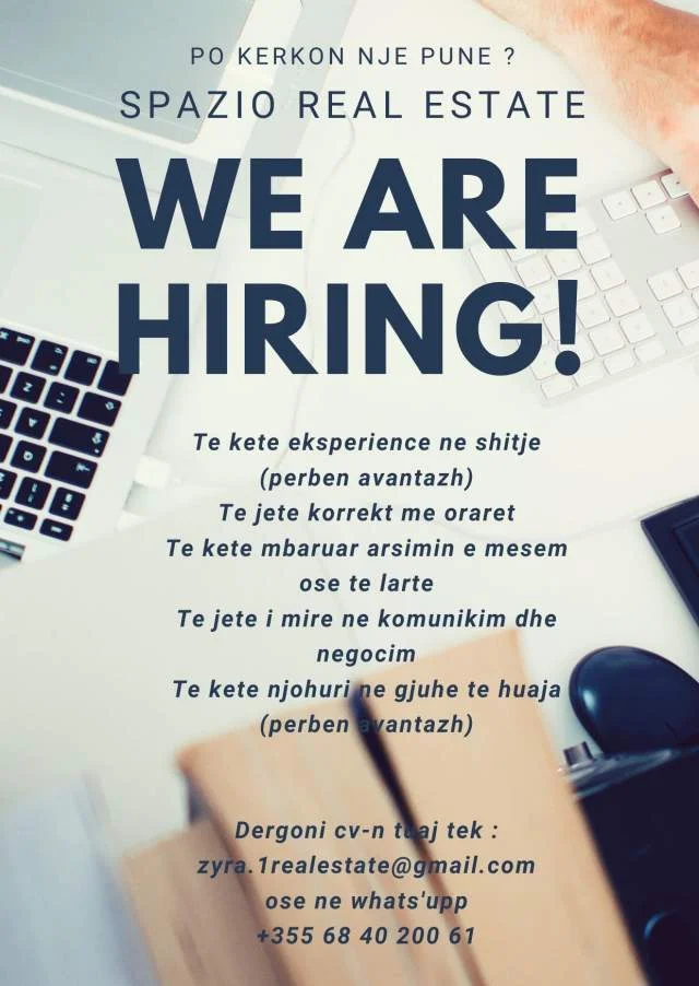Tirane, ofroj vend pune Konsulent Imobiliar Me rroge Baze + %