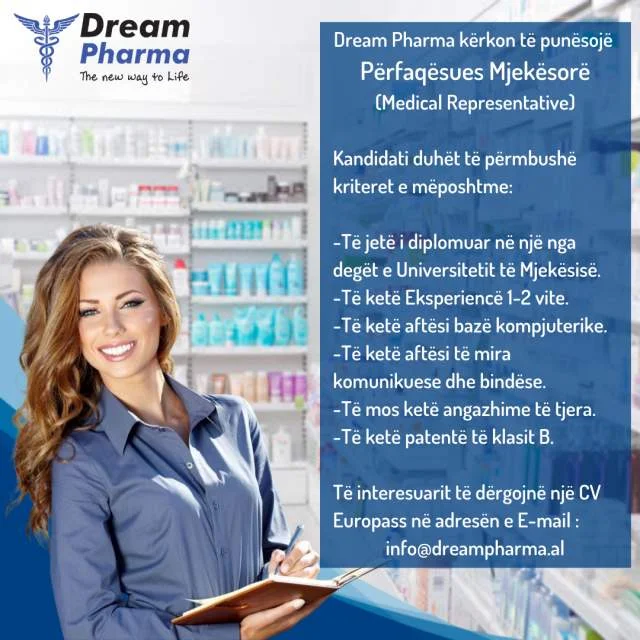 Dream Pharma kërkon të punësojë Përfaqësues Mjekësorë (Medical Representative)