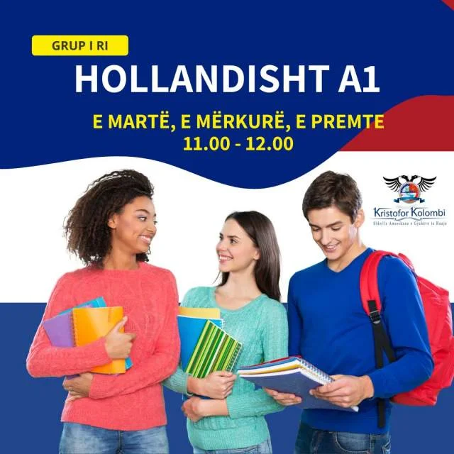 05.05.2023, 11:30 Kristofor Kolombi Tirane, ofrojme kurse gjuhe Gjuha Hollandeze A1 Tirane Nr. Njesia - Zona me e afert? 2 Qyteti Studenti | Vilat Gjermane | Sauk Grup i ri Hollandisht Niveli A1 E martë , e mërkurë dhe e premte 11.00-12.00 Contact WhatsApp