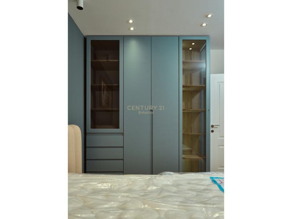 Organizohet ne hyrje nepermjet nje korridori shperdares qe lidh sallonin me ballkonin e bollshem,kuzhine te vecuar,tualetin me ajrosje natyrale dhe dhomen e gjumit.