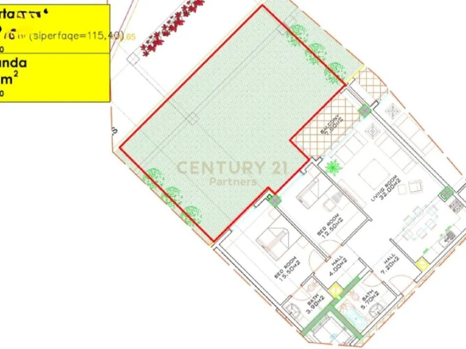 Apartamenti ka nje siperfaqe totale se bashku me hapesirat e perbashketa 115.40 m2