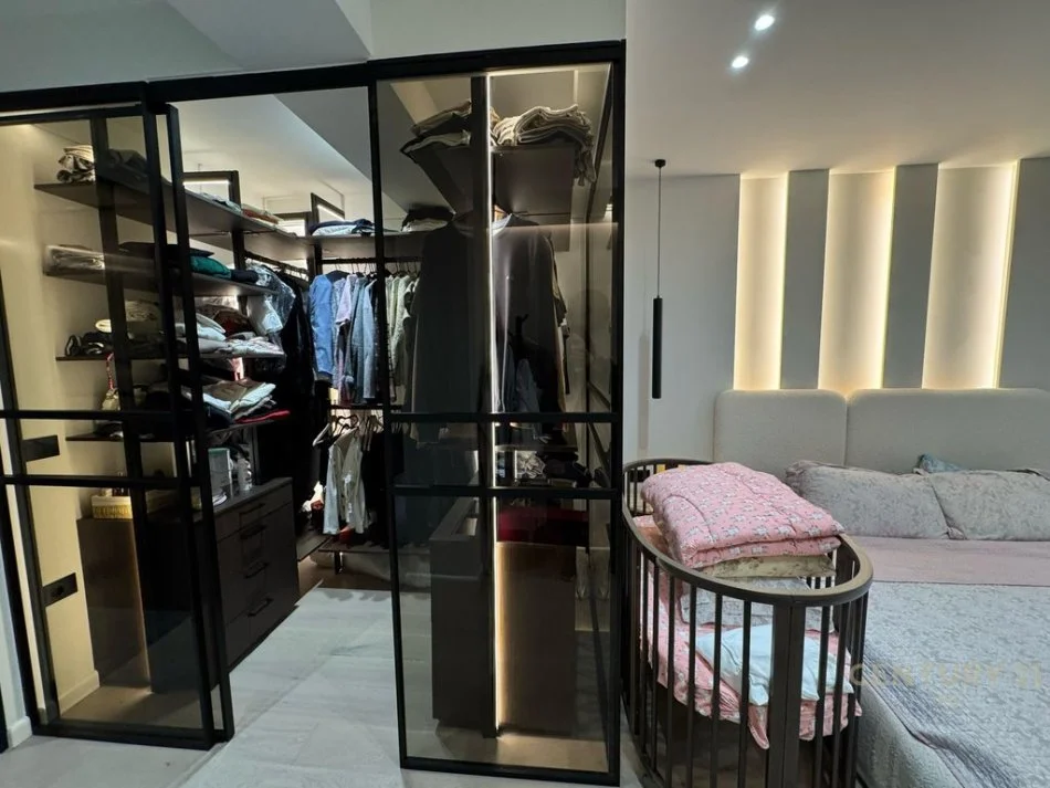 Banesa ndodhet ne katin e trete te nje godine e ndertuar se fundmi dhe organizohet nga korridori shperndares, salloni ndenjes me kendin e gatimit, dy dhomat e gjumit, dhoma matrimoniale me tualet te dedikuar dhe garderobe , gjithashtu ka edhe nje tualet tjeter. Apartamenti ka punime shume cilesore teksa eshte e arreduar ne menyre bashkekohore me markat me te mira te elektroshtepiakeve. Zona ne te cilen ndodhet ai ofron te gjitha facilitetet e nevojshme per nje jetese komode.