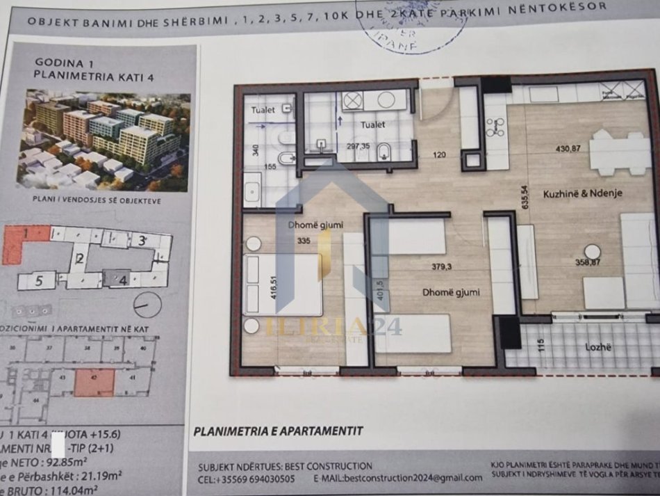Apartamenti ka siperfaqe bruto prej 114 m2 dhe siperfaqe neto prej 92.85 m2