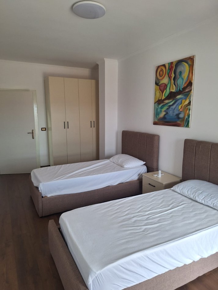 Ndertim i ri i 14 viteve te fundit, i mire administruar, kati i peste me ashensor, 9 kate ne total, orientim perendim, planimetri perfekte, siperfaqja 120 m2 bruto, me pamje nga shkolla, pamje e lire pa mundesi ndertimi perpara tij, ballkoni dopio xham, dhoma te ngrohta dhe me ndricim te konsiderueshem, i sapo restauruar dhe mobiluar, ambient i vecante ngrenie, ndenieje, ballkon i mbyllur me kend te kompletuar qendrimi dhe pune, dy ballkone, nje i hapur vetem per mbajtje lulesh dhe tjetri i bollshem per cdo nevoje perdorimi . Nje mundesi e mire per nje ambient komod dhe jete cilesore.