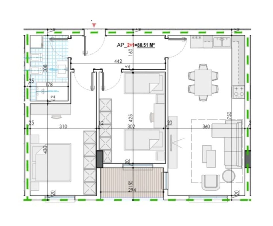 - Siperfaqe neto: 80.51 m2.