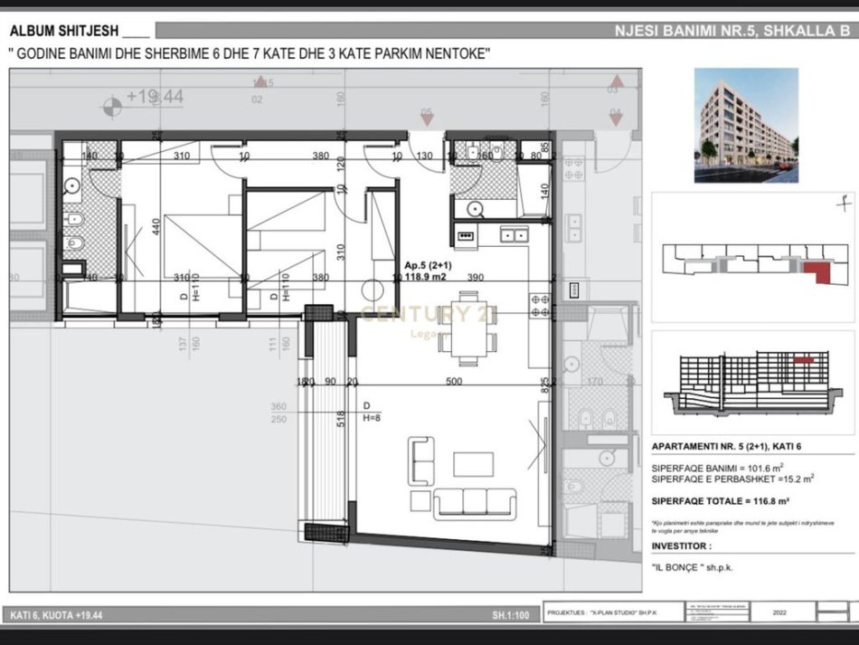 Tirane, shes apartament 2+1 Kati 6, 117 m² 186.880 € (Bulevardi Ri)
