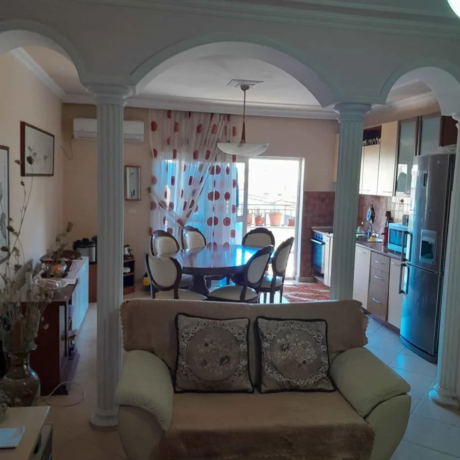 Tek Komuna e Parisit, rruga Medar Shtylla, prane Esco Bar, shitet apartament 2+1, 2 tualete, ballkon, me siperfaqe 126 m2 bruto (115 m2 siperfaqe neto ME HIPOTEKE), kati i 7, pallat i ri, me ashensor, e mobiluar. A.R.