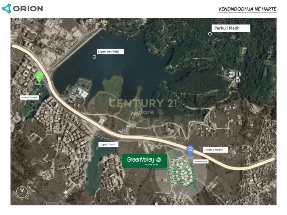 E pozicionuar në një nga zonat më të gjelbërta dhe të bukura të Tiranës me pamje nga parku i madh i liqenit dhe nën këmbët e kodrave panoramike të Selitës "Green Valley" ofron lidhje direkte me akset kryesore të qytetit, mundësi për tranport publik, distancë e pranueshme për levizje në këmbë, biçikletë, urban si dhe lidhje direkte me Unazen e Madhe te Tiranes. Në ekstremin më të gjelbër të qytetit por sërish brenda tij!