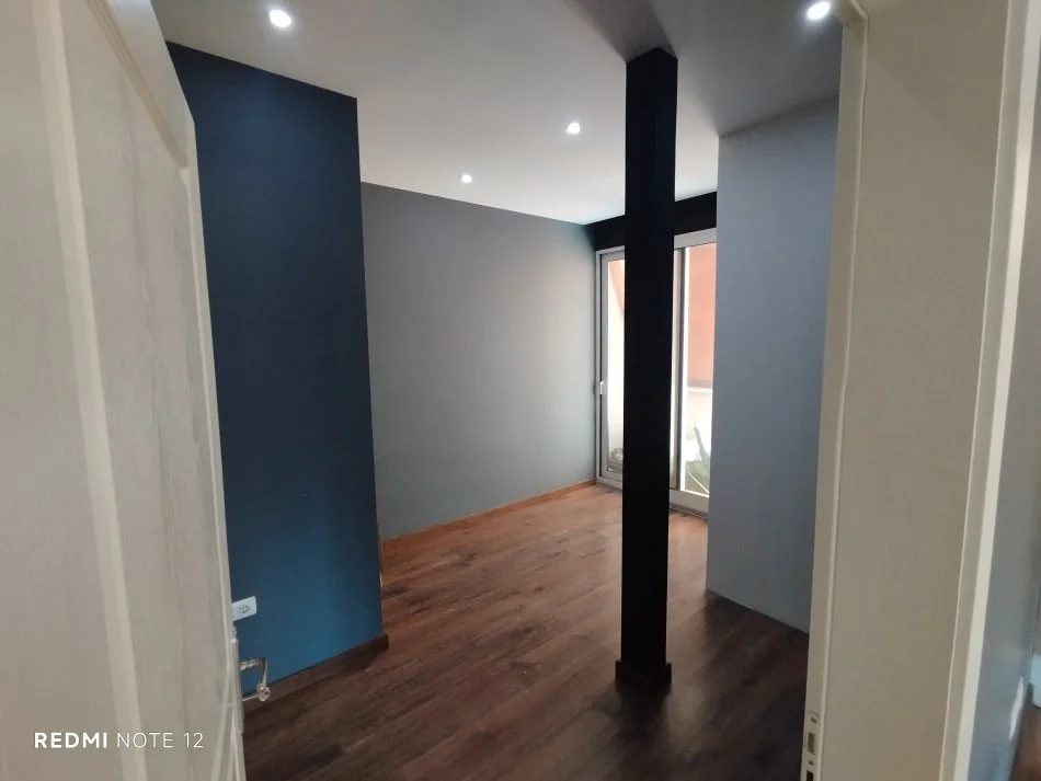 Planimetri me hyrje kryesore e [ersonalizuar ne koridor shperndares e pajisur me kuzhine gatimi rreth 7m, me parket dhe me sistem kondicionimi multisplit dhe hidrosanitare incaso.