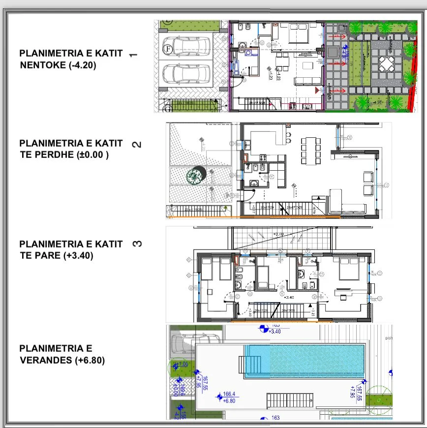 Organizimi i brendshëm ofron ambiente të bollshme dhe funksionale, me ndriçim natyral gjatë gjithë ditës falë orientimit dhe hapësirave të mëdha të jashtme. Veranda prej 181.4 m² krijon mundësi ideale për relaks, ambient lounge, kënd ngrënieje në natyrë apo organizime private. Oborri prej 66.5 m² shton ndjesinë e privatësisë dhe komoditetit për familjen.