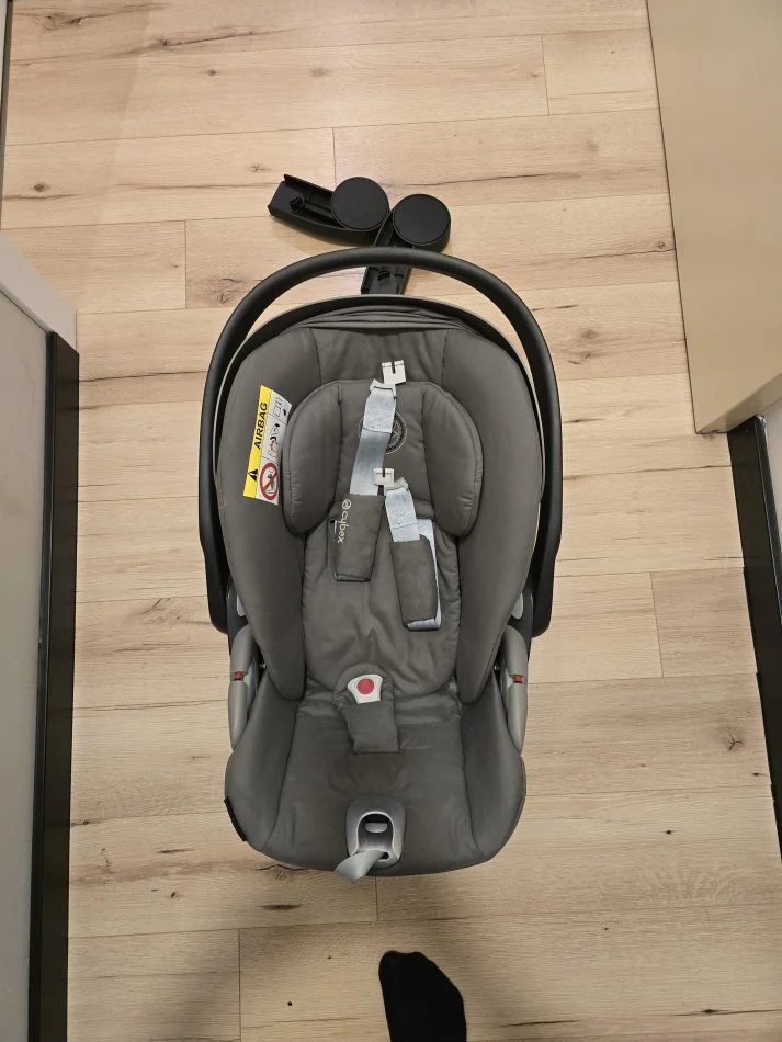 Ngjyre gri, i perdorur shume pak dhe pothuajse i ri. Aksesoret e perfshire per lidhjen me karrocen Cybex, qe zakonisht vetem aksesoret per Cybex kushtojne 50 euro.