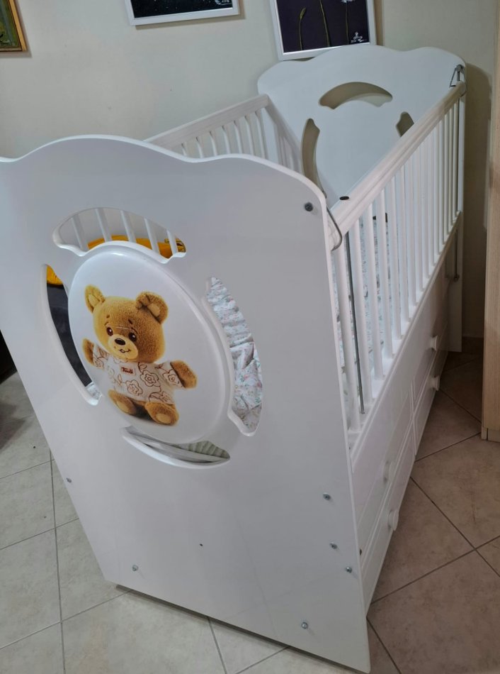 Krevati ka 5 vjet që është bler dhe ka mbajtur dy fëmijët e familjes. Krevati është në gjendje të rregullt me dyshek, ka 4 sirtar dhe lekundet për ti vënë në gjumë.
