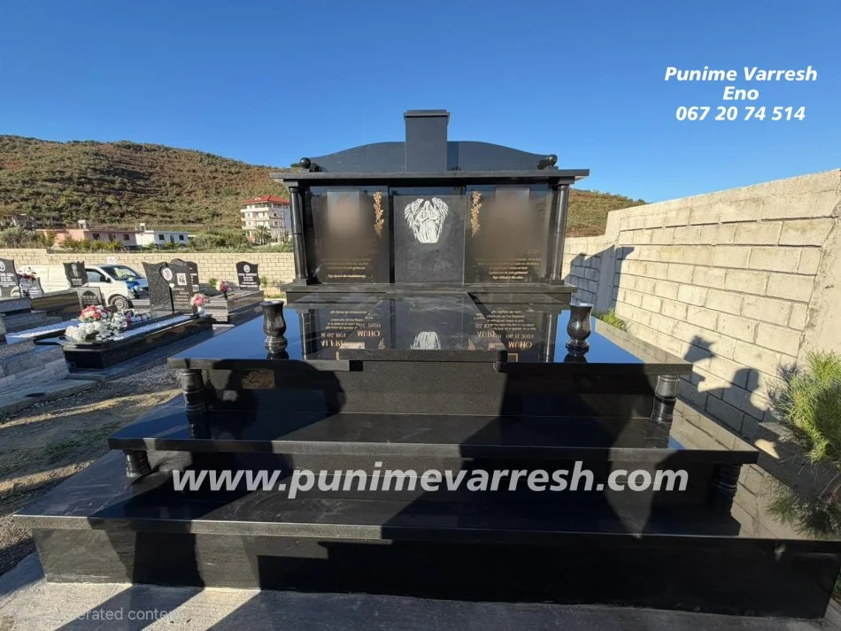 Projektuar Nga Punime Varresh Eno - Varr Granit I ZI Komplet - Montuar Ne Varrezat E Durresit.