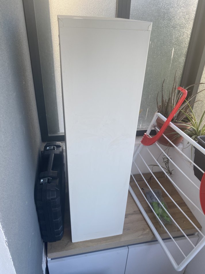 Shes nje raft metalik pothuajse te ri me lartesi 95 cm, gjeresi 35 cm dhe thellësi 25 cm. Cmimi 2000 lekë te reja. Cel. : 00355683435612